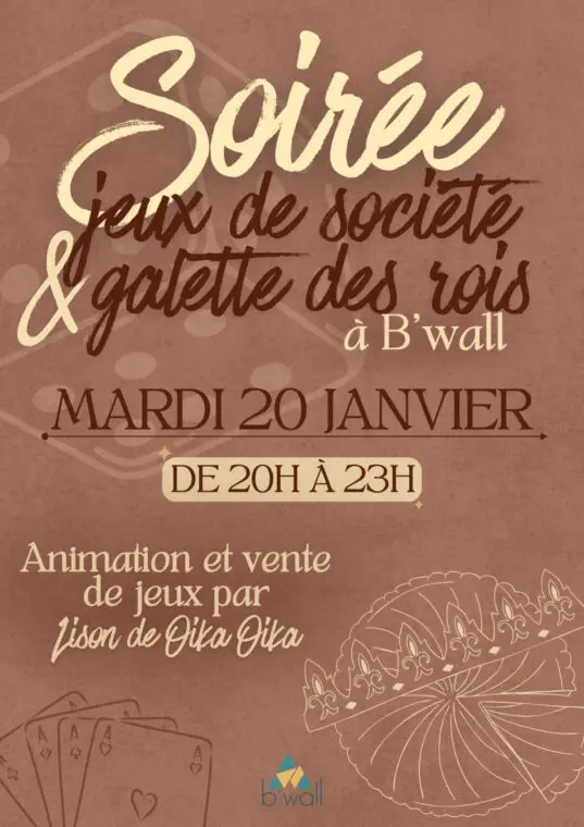 À B’wall Lorient, on tient à célébrer ce début d’année ensemble. Et quoi de mieux pour ouvrir les festivités qu’une soirée jeux de société accompagnée d’une bonne galette des Rois ?
